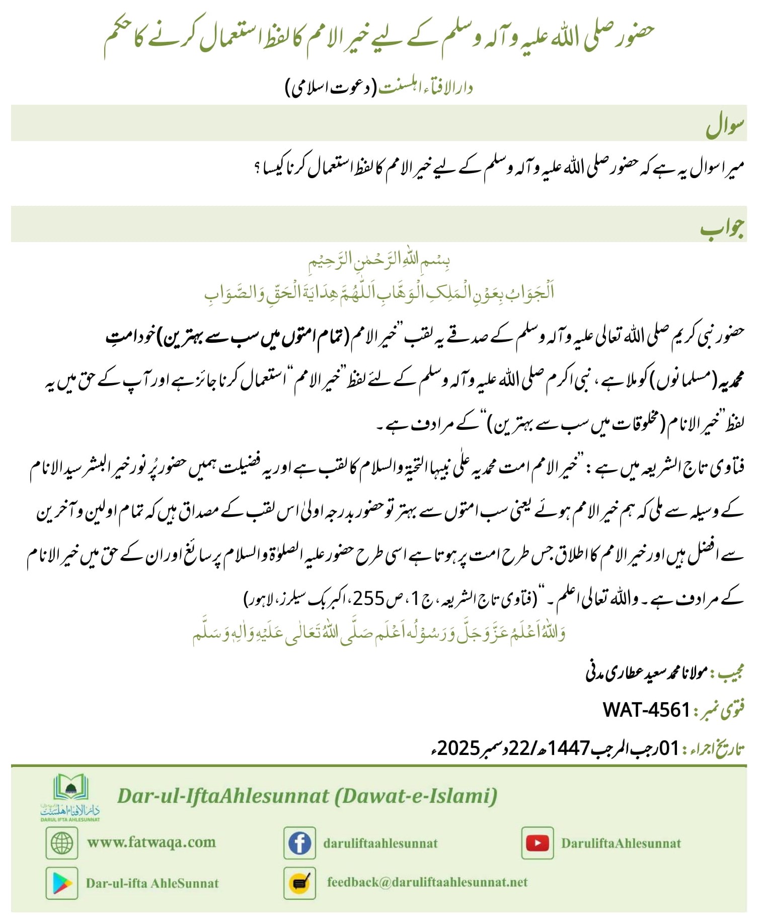 مجیب: مولانا محمد سعید عطاری مدنی